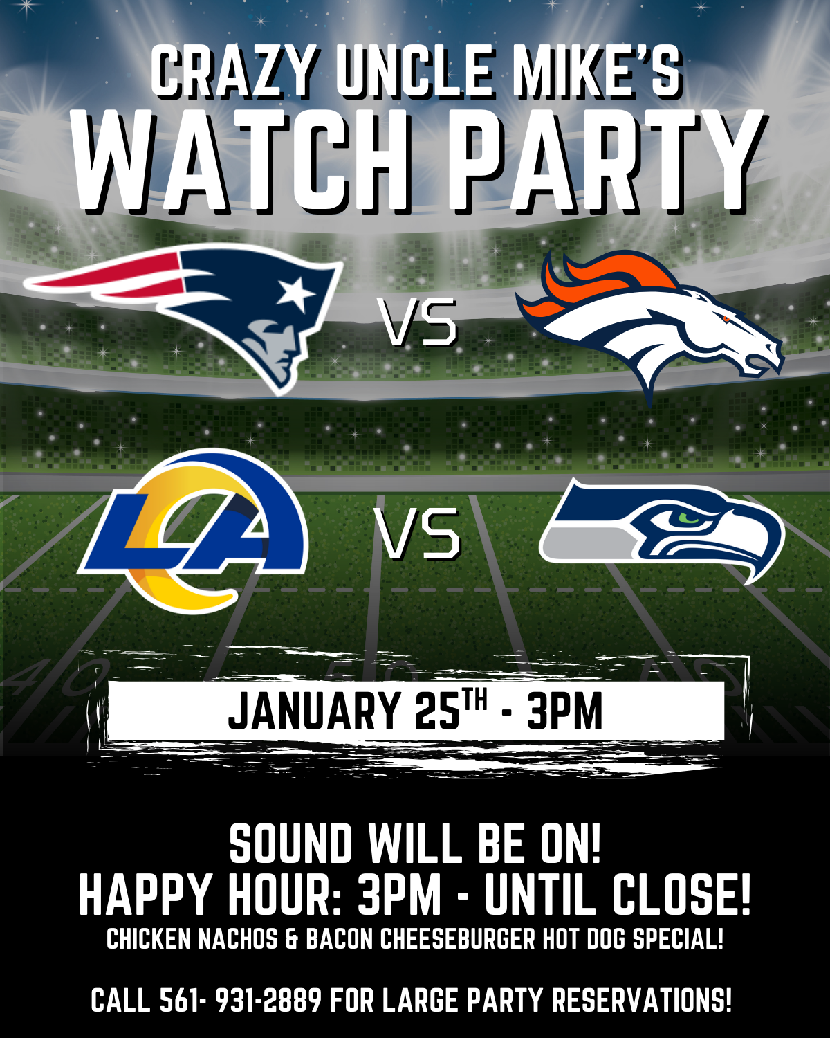 Join us at Crazy Uncle Mike’s on January 25th at 3PM for our NFL Conference Championship Watch Party! 🍻 Happy Hour from 3PM to close 🌭 Game Day Specials: Chicken […]