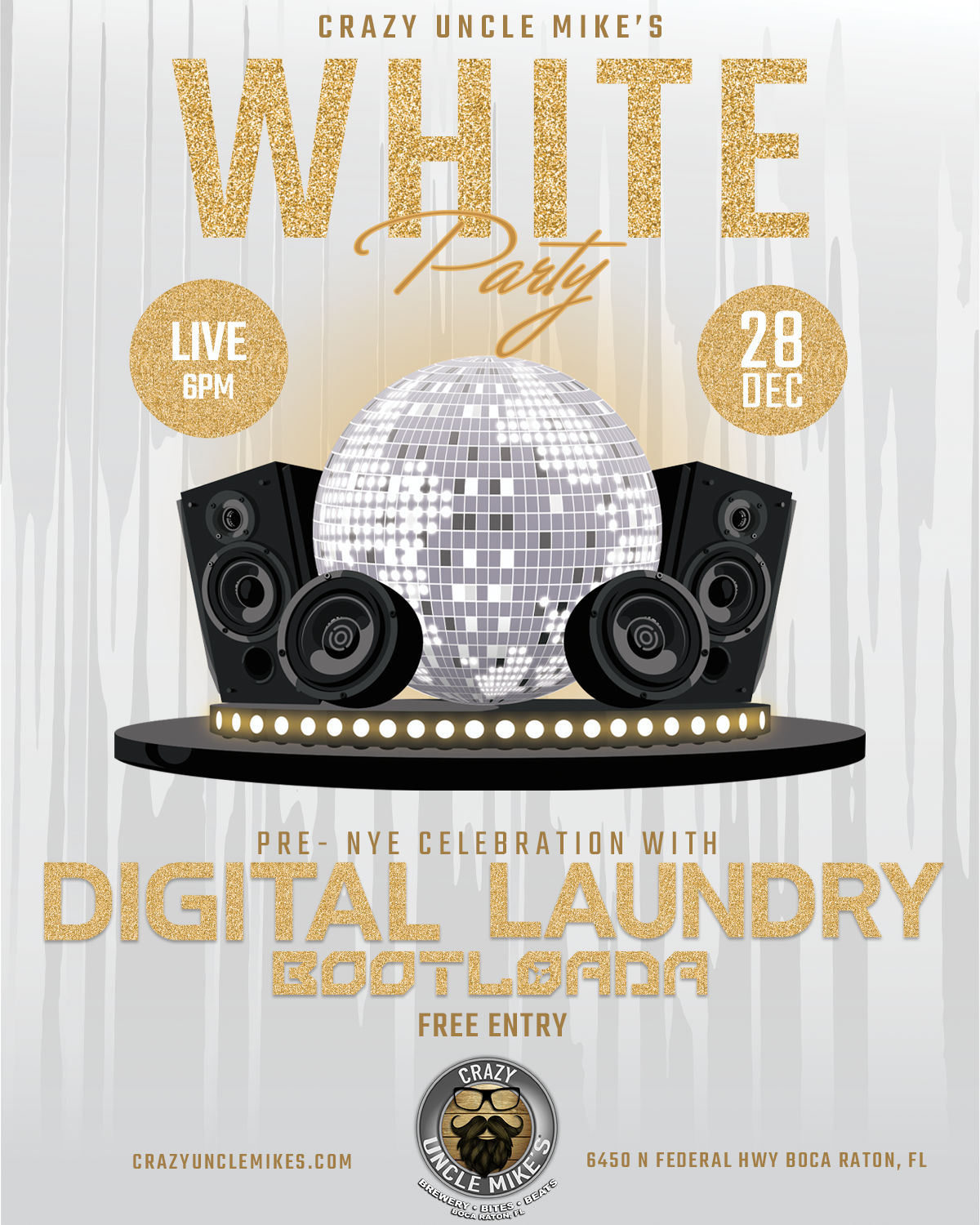 Crazy Uncle Mike's 6450 North Federal Highway, Boca Raton, FL, United StatesAll white, all night! Join us at Crazy Uncle Mike’s on December 28th for our White Party featuring Digital Laundry (Casey Luden) with special guest Bootloada! This FREE show is your […]